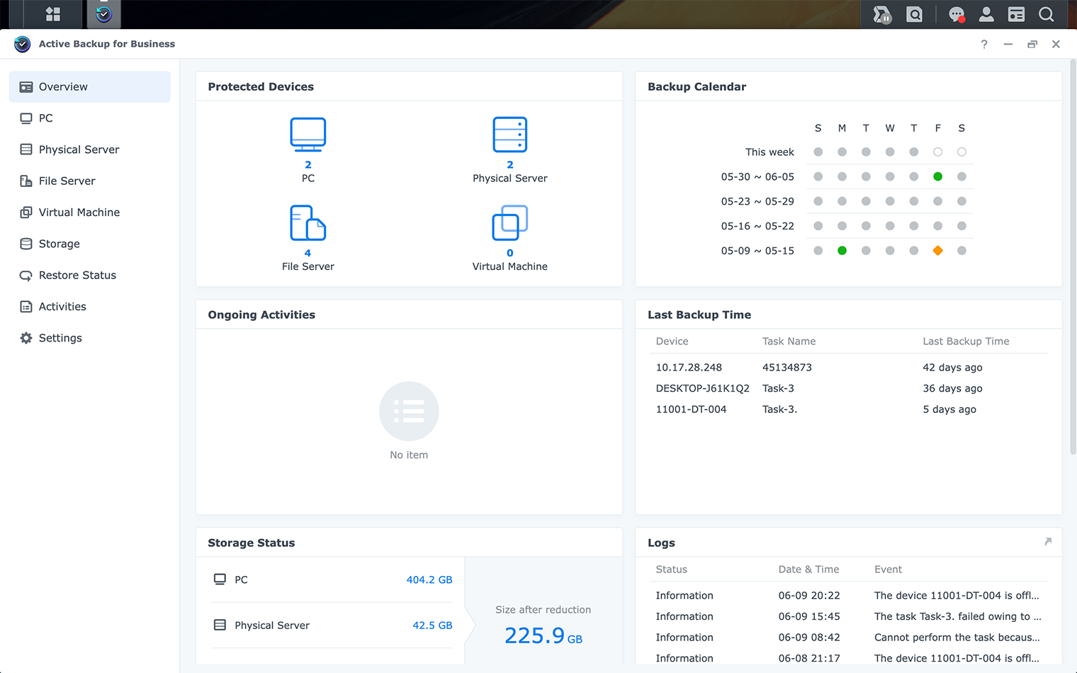 利用成熟的 DSM 技术、配套的加密以及 Btrfs,Active Backup for Business 可大大提升数据安全性以及存储效率。