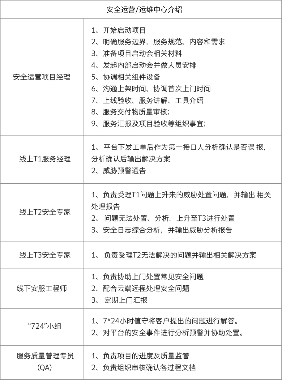 (1)安全应急支持服务所需输出技术文件 《安全应急响应周报》 《××安全事件应急处置情况报告》 《全年安全应急响应与处置总结报告》 (2)全网安全值守服务输出技术文件 《异常和问题处理报告》 《异常和问题处理月报》 根据保障要求(如零日报等)提供《全网安全值守报告》 《全网安全值守总结报告》 (3)全网安全异常监测服务输出技术文件 《安全异常监测半月报》 《全网安全异常监测服务年终总结报告》 (4)安全保障加固服务输出技术文件 《全网全年安全保障整体方案》 《网络、系统、应用安全加固方案》 (5)安全事件深度分析服务 《安全事件深度分析报告》 (6)内容安全监测服务 《内容安全监测报告》 |